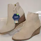 NEW TOMS Wedge Kelsey Womens Tan Beige Leather Ankle Boots Size 11