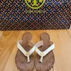 Tory Burch Designer Thora Cream Flip Flops Thongs Sandals Size 9