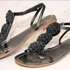 Kate Spade New York Caryl Black Leather Rosette Sandals Shoes Flats Women 10