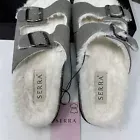 NEW Serra Faux Fur Lined Gray Footbed Sandals Slides US Size 9 (0530112)