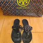Tory Burch Designer Miller Black Sandals Thongs Flip Flops size 10