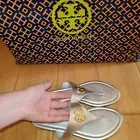 Tory Burch Silver Benton Sandals Thongs Flip Flops Size 9