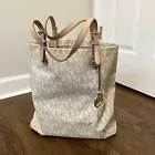Michael Kors Designer MK Monogram Cream Leather Tote Purse Handbag