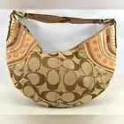 Coach Designer Grommet Tan Peach Momogram Leather Shoulder Bag Satchel Purse