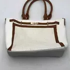 Miztique Designer White Brown Leather Inner Pockets Shoulder Bag Purse Satchel