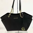 MICHAEL Kors Designer Black Gold Leather Chain Link Tote Bag Purse Handbag