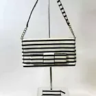 2 Piece Kate Spade Designer Black & White Striped Clutch Handbag Purse + Wallet