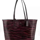 2 COACH Reversible City Tote Burgundy Black Animal Tiger Stripe Purse Handbag