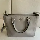 Tory Burch Emerson Light Brown Gray Mauve Satchel Top Handle Bag Crossbody