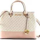 Michael Kors MK Signature Pink Beige Signature Double Handles Satchel Handbag