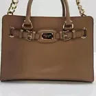Michael Kors MK Designer Hamilton Saffiano Satchel Tan Purse Handbag