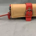 Coach Designer Vintage Tan & Salmon Leather Oval Wristlet Clutch purse handbag