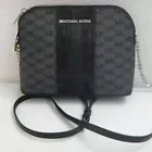 Michael Kors MK Signature Cindy Stripe LG Dome Crossbody Bag Purse Handbag