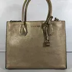 Michael Kors MK Mercer Metallic Gold Leather Zip Pocket Satchel Bag Purse