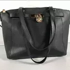 Michael Kors MK DESIGNER Hamilton Black Leather Large Satchel Bag Tote