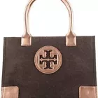Tory Burch ELLA Wool Leather Trim Large Brown Gold Tote Bag Purse Handbag