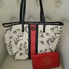 Tory Burch Designer Red White Blue Floral Stripe Tote Bag Purse