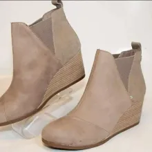 NEW TOMS Sadie Beige Slip On Wedge Heel Ankle Boots Size 9.5
