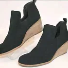 NEW TOMS Kallie Wedge Womens Black Suede Cutout Ankle Boot Size 11