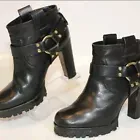 Tory Burch Designer Rina Black Leather Harness Booties Heels Boots Size 8.5