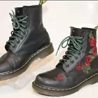 Dr. Martens Vonda Black Leather Floral Embroidered Combat Boots Rose Size 6
