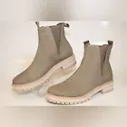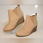 NEW TOMS Kelsey Beige Leather Wedge Heel Ankle Boots Womens Size 9.5