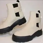 NEW TOMS Combat Alpargata Beige Leather Womens Ankle Boots Size 9