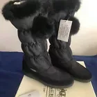 COACH Designer Blk Theona Signature Jacquard Rabbit Fur Snow Boots Size 10.5/ 11