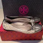 Tory Burch Designer Leopard Animal Print Silver Cream Ballet Flats Size 9.5