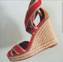 Tory Burch Designer Adonis Wedge Platform Red Espadrilles Heels Size 9