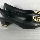 Tory Burch Designer Janey Black Leather Comfort Block Heel Pumps Size 7.5M